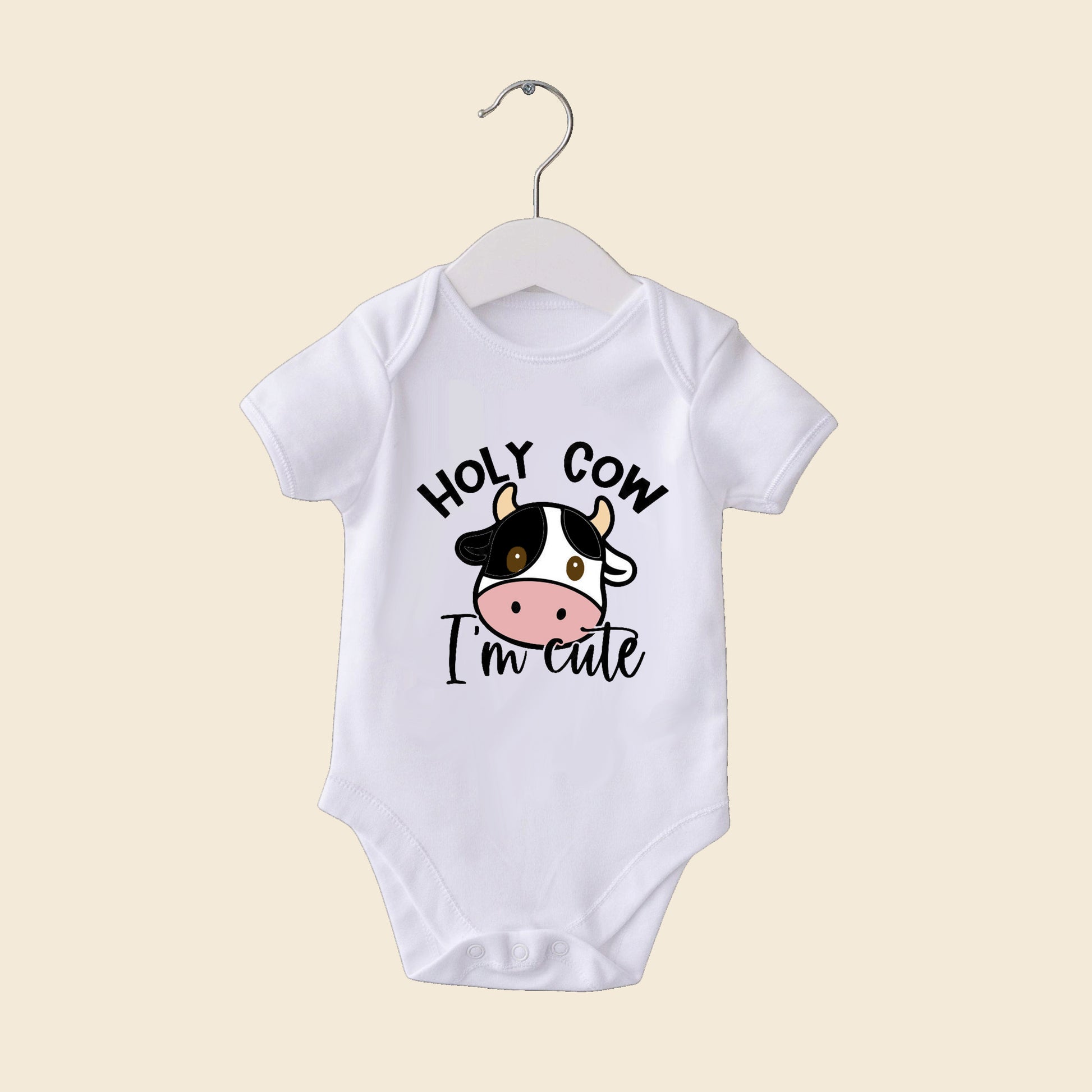 Ken jij ook een schattige baby? Dan is dit rompertje helemaal geschikt! Dit rompertje is gemaakt van zacht katoen en verkrijgbaar in diverse maten. Het rompertje heeft leuke opdruk met de tekst: Holy Cow I'm Cute.. Het is wasbaar binnenste buiten op 30 graden. Niet geschikt voor in de droger.