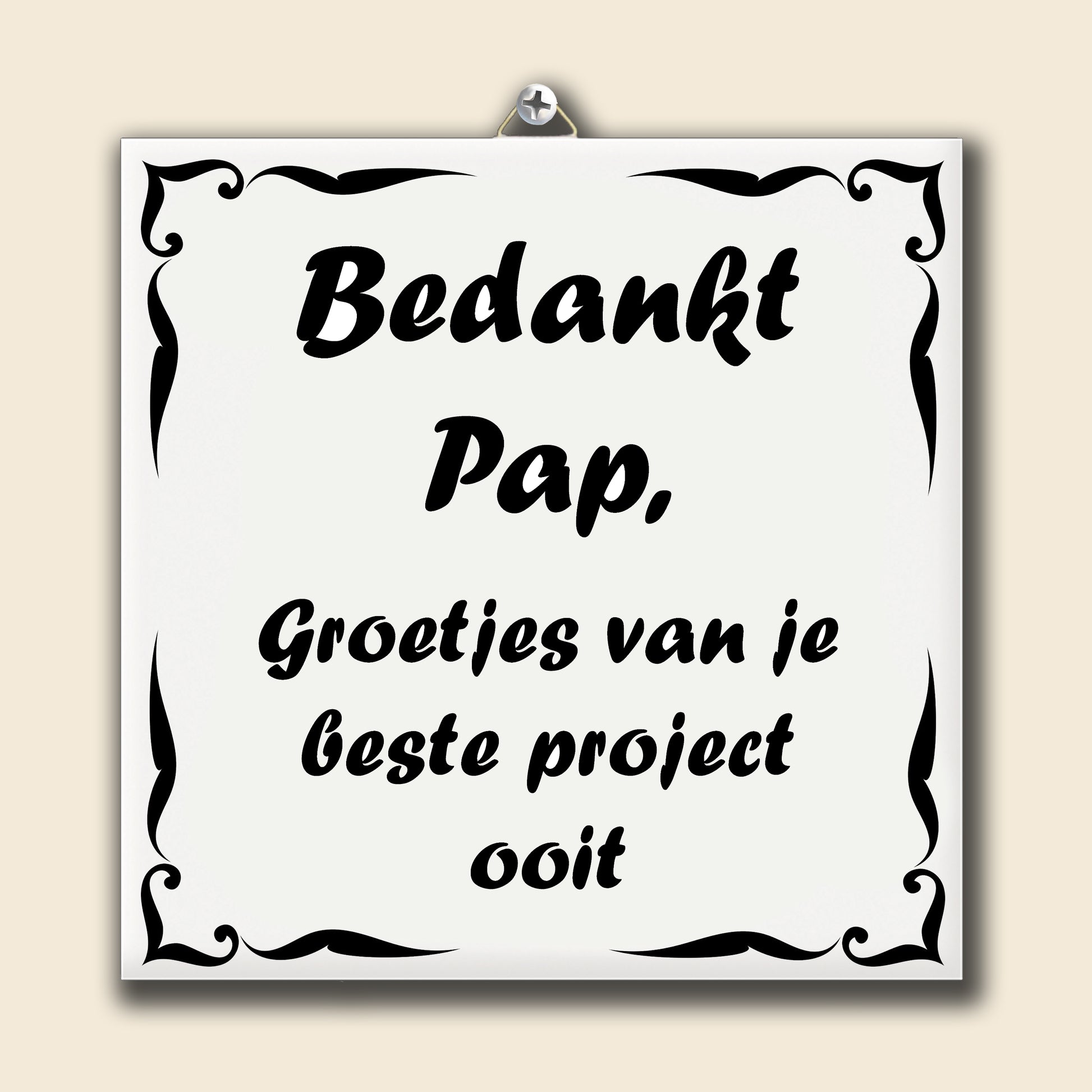 Het perfecte cadeautje voor Vaderdag of zomaar: Dit tegeltje met de tekst ‘Bedankt pap, van je beste project ooit’ is een grappige en liefdevolle manier om je vader te laten weten hoe speciaal hij is.